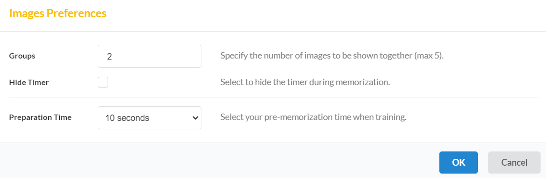 Select “Preferences” and make sure that the “Groups” are set to 2. This means that two images will be displayed at a time instead of one. Most memory athletes prefer this group setting, however, some prefer to have it set to 1.