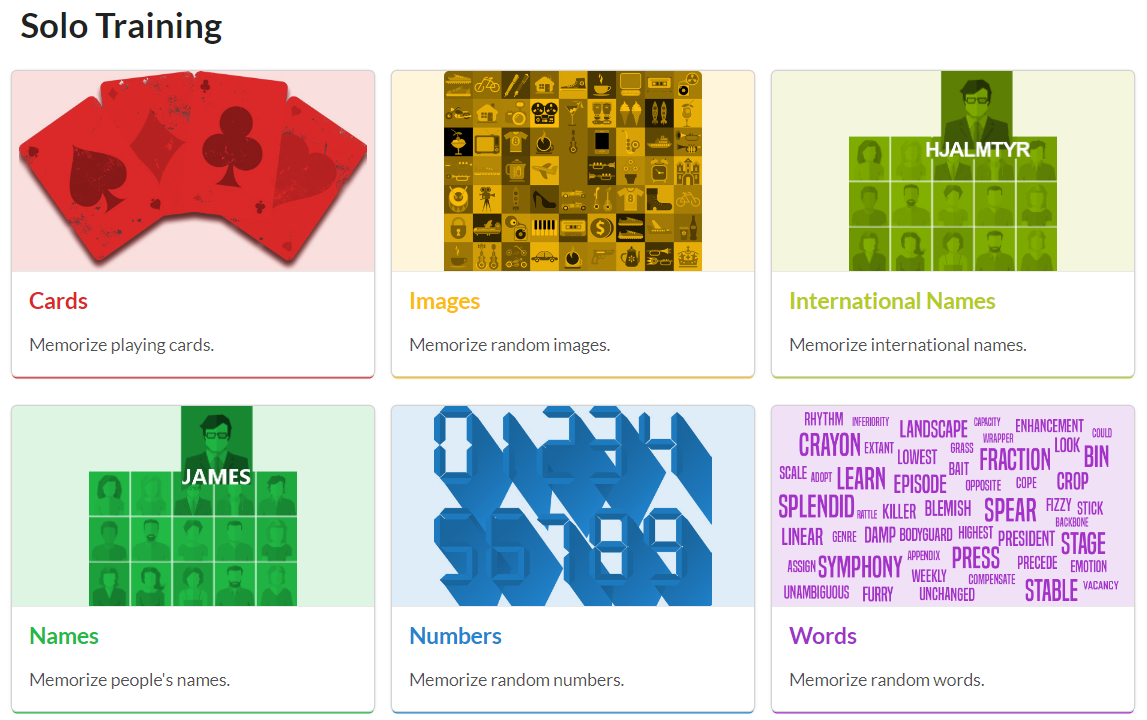 The memory training software that world-class memory experts use is a website called Memory League. It is specifically designed to train one’s use of mnemonic technique through various disciplines such as Numbers, Words, Images, Cards, and Names and Faces.