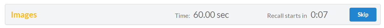 After the 1 minute of memorization you will be given time to prepare for recall. The time allotted can be adjusted under “Preferences” section to none, 5, 10, or 20 seconds. Some memory athletes use this time to mentally rehearse the imagery in their memory palace before recall. You can choose to skip or take time to review your loci. For now, you can skip, and later you can experiment with both approaches to see what works best for you.